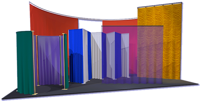 NEW in version 2.55, SoftGoods 2's pipe-and-drape mode is greatly improved, offering a "Non-Sleeve" option for modeling systems similar to those offered by Wentex® and a new feature making creating arched openings easier.